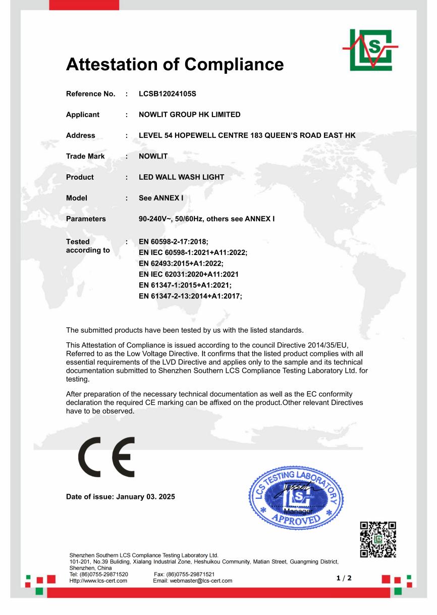 • LED Wall Wash Light - CE Certificate