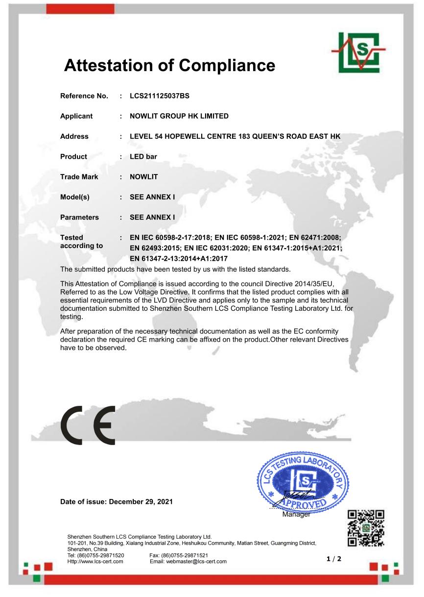 • LED Bar Light – CE Certificate