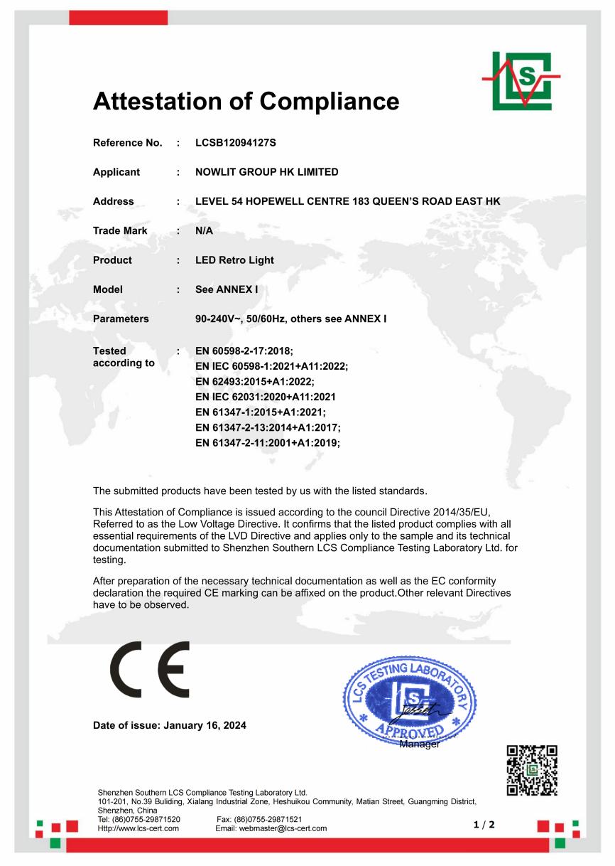 • LED Retro Light - CE Certificate